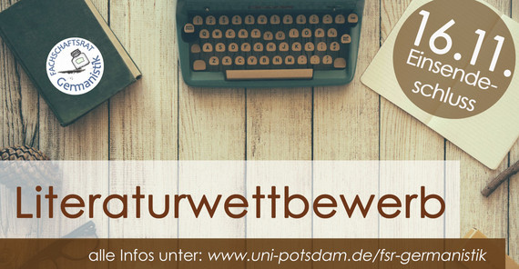 Noch bis zum 16. November können sich junge Autorinnen und Autoren mit Lyrik und Kurzprosa an einem erstmals veranstalteten Literaturwettbewerb beteiligen. Hierzu müssen sie ihre Texte beim Fachschaftsrat Germanistik unter fsr-germanistik@uni-potsdam.de einreichen.