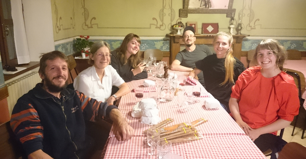 Ein letztes Mal genießen wir am Abend die unvergleichliche Gastfreundschaft und die Kochkünste unserer Wirtinnen Renata und Franca im Albergo. Nadir leistet uns heute bei unserer „ultima cena“ Gesellschaft und bringt einige Exemplare seines selbst hergestellten Ziegenkäses mit. Zu unserer großen Überraschung berichtet er von seinen Reisen zum Münchner Oktoberfest, nach London und Paris. Seitdem er sich für das Hirtenleben entschieden hat, sind solche Ausflüge undenkbar, denn die Versorgung seiner Tiere ist seine Lebensgrundlage und bindet ihn. Einige von uns denken an die heimischen Haustiere, die für die Dauer unserer Exkursion von Freunden und Familie versorgt werden. Wer würde aber ein oder zwei Wochen lang auf eine ganze Ziegenherde aufpassen und wer hätte dafür die nötige Expertise?
