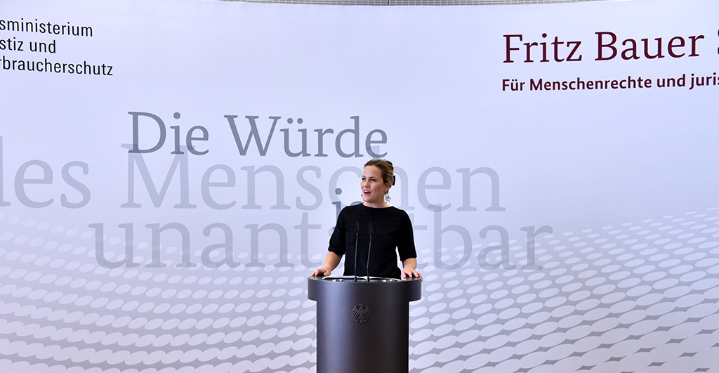 Dr. Marie Duclaux de L’Estoille: Ich bedanke mich bei Ihnen! Ich war sehr überrascht und geehrt, den Fritz-Bauer-Preis zu erhalten. Fritz Bauer ist in Frankreich durch eine 2016 produzierte Dokumentation mit dem Titel „Generalstaatsanwalt. Nazi-Jäger“ von Catherine Bernstein bekannt. Fritz Bauer war zeit seines Lebens selbst ein entschiedener Gegner der Todesstrafe. Wir müssen uns an Fritz Bauer erinnern und uns von seinem Engagement für Demokratie, Rechtsstaatlichkeit und die Achtung der Menschenwürde inspirieren lassen. Fritz Bauer ist sicherlich ein Vorbild für Juristen, aber er muss auch ein Vorbild für uns alle sein.