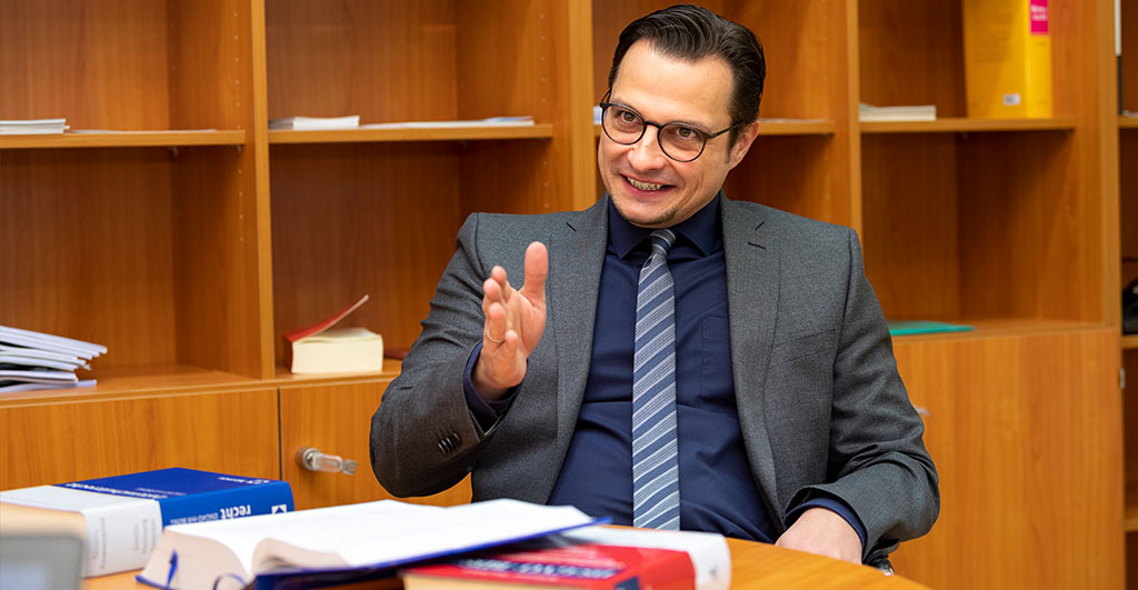 Über Grenzen geht Björn Steinrötter mit seinem Fachgebiet aber auch in der Rechtswissenschaft selbst. „IT-Recht ist wohl das, was man eine Querschnittsmaterie nennen würde. Während traditionell zumeist rechtsgebietsbezogen klassifiziert wird, ist es beim IT-Recht der Gegenstand der Betrachtung, der die Disziplin kennzeichnet – und zwar im Prinzip aus allen denkbaren Rechtsgebieten. Das gesamte Spektrum kann ich daher nicht abdecken; ich fokussiere mich auf die zivil-, daten-, immaterialgüter- und kollisionsrechtliche Perspektive.“