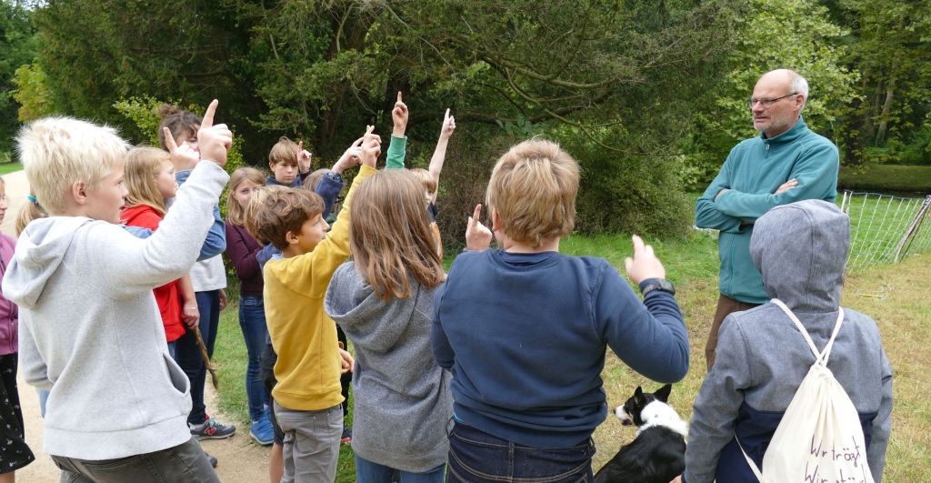 Dass es gefährdete Arten gibt und die Vielfalt der Blüten auf einer Wiese wichtig für die Insekten, besonders für die Wildbienen ist, hatten die Kinder schon gehört. Was aber die Schafe zur Artenvielfalt beitragen können, das erfuhren sie von Jakob Schulz. Er erklärte ihnen, wie die Tiere mit ihren Klauen offene Bodenstellen schaffen, in denen neue Pflanzen wachsen können. Durch das gründliche Abfressen der Vegetation entziehen sie dem Boden überschüssige Nährstoffe, was sich ebenfalls positiv auf den Erhalt der Artenvielfalt auswirkt. Noch wichtiger aber ist, dass sich an ihren Klauen und in ihrem dichten Fell die reifen Samen der Gräser und Kräuter verfangen, die die umherziehenden Schafe an anderen Orten abschütteln. So können sich die vom Aussterben bedrohten Pflanzen wieder ausbreiten.