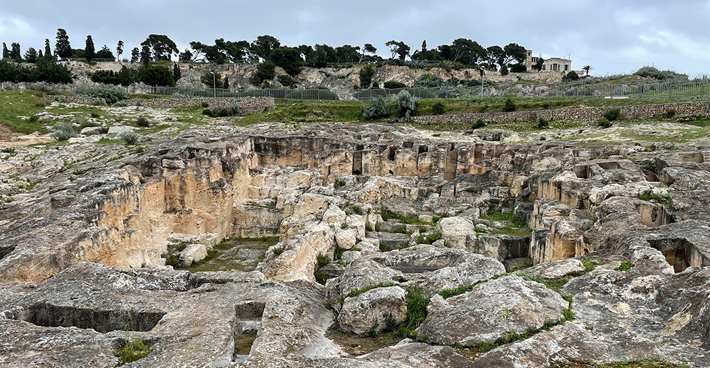Unser zweiter Tag in Cagliari beginnt mit der Erkundung der punischen Nekropole „Tuvixeddu“. Die Begräbnisstätte mit ihren zahlreichen und kostbaren Grabbeigaben zeigt nicht nur, wie groß, sondern auch wie reich die Stadt im 6. Jahrhundert vor Chr. war. Zu der Zeit war Cagliari das wichtigste (Handels-)Zentrum des karthagischen Machtbereichs. Der Name Tuvixeddu geht auf den Begriff tuvu zurück, der „kleines Loch“ bedeutet. Ein Teil dieser „kleinen“ Löcher, die als Gräber dienten und bis zu elf Meter tief sind, beeindrucken uns sehr. Während des Zweiten Weltkrieges dienten die Gräber als Luftschutzkeller und danach als Zufluchtsort für Vertriebene und Obdachlose.
