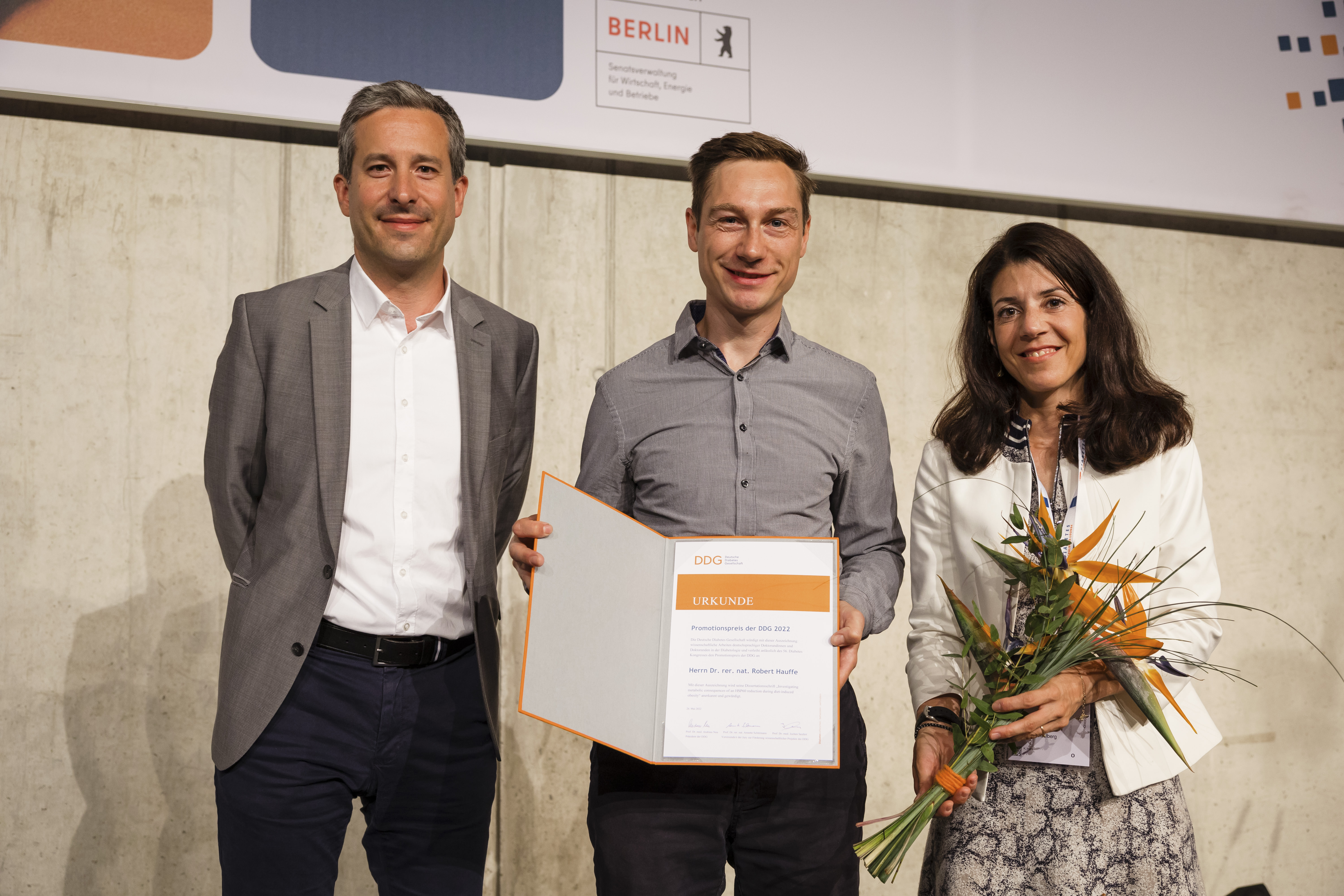 Die Preisverleihung der DDG fand am 26. Mai im Rahmen des Symposiums für Ernährung und Diabetes mellitus auf dem Diabetes Kongress in Berlin statt. Der Promotionspreis der DDG wird für hervorragende Dissertationen auf dem Gebiet der Diabetologie vergeben. Er wird seit dem Jahr 2010 von der Sanofi-Aventis Deutschland GmbH gestiftet und deutschsprachigen Doktorandinnen und Doktoranden bis spätestens zwei Jahre nach ihrer Promotion verliehen.