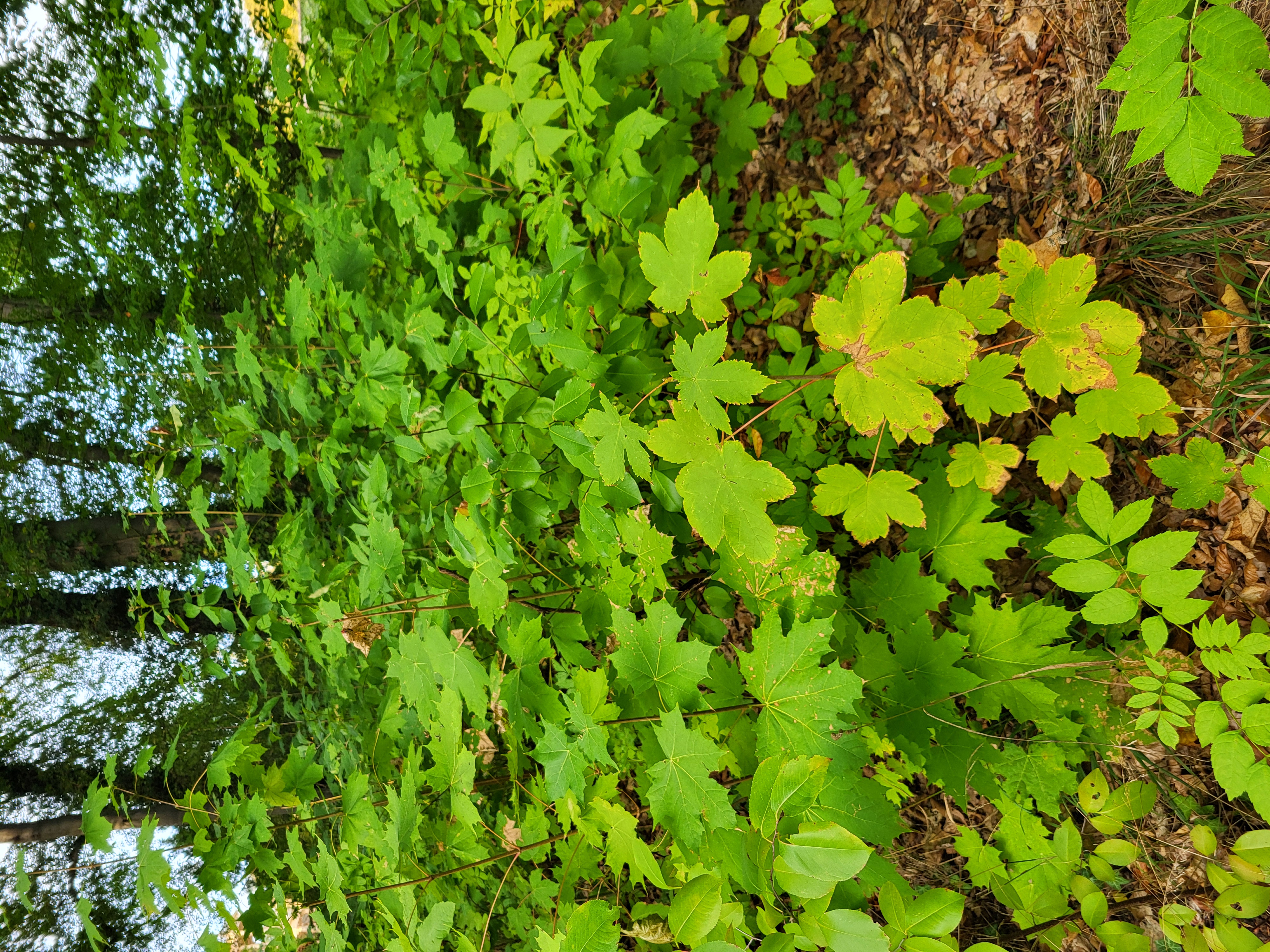 Reichlicher Jungwuchs des Berg-Ahorn (Acer pseudoplatanus) – hier zusammen mit Spitz-Ahorn (Acer platanoides) – ist typisch für viele Wälder in Brandenburg und Berlin. Er gehört zu den Arten, die mit einer Geschwindigkeit von mehreren Kilometern pro Jahr nach Westen „wandern”. Hauptgrund ist der atmosphärische Stickstoffeintrag. Foto: Dr. Thilo Heinken