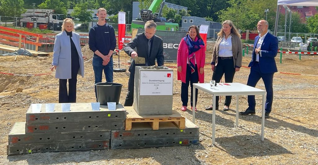 Der Grundstein für den Neubau des Zentrums für Lehrerbildung und Bildungsforschung (ZeLB) der Universität Potsdam auf dem Campus Golm ist gelegt. Im Beisein von Dr. Manja Schüle, Ministerin für Wissenschaft, Forschung und Kultur des Landes Brandenburg, Frank Stolper, Staatssekretär im Ministerium des Innern und für Kommunales des Landes Brandenburg, Dr. Britta van Kempen, Vizepräsidentin für Lehre, Studium und Europa der Universität Potsdam, sowie der Geschäftsführung des Brandenburgischen Landesbetriebs für Liegenschaften und Bauen (BLB) Sven Stolpe und Gerit Fischer wurde am Montag der offizielle Baubeginn gefeiert.