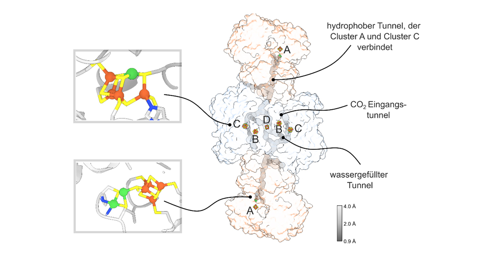 „Unsere Kryo-EM-Karten von sechs Zwischenzuständen der CODH/ACS sind so hoch aufgelöst, dass die an das Metallzentrum gebundenen Moleküle eindeutig mit den Bewegungen des Proteins korreliert werden können“, sagt der Erstautor der Studie, Jakob Ruickoldt. „Bislang wurden die verschiedenen Bindungszustände von CODH/ACS noch nicht mittels Kryo-EM untersucht“, so Petra Wendler. „Durch den Einsatz dieser Methode haben wir herausgefunden, wie die Bindung der verschiedenen Moleküle das aktive Zentrum für den nächsten Reaktionsschritt vorbereitet und so Nebenreaktionen und den Verlust von wertvollen Reaktionszwischenstufen verhindert. Dieses Wissen wird helfen, die Katalyse des uralten Enzymkomplexes für die biotechnologische Kohlenstofffixierung zu nutzen. “