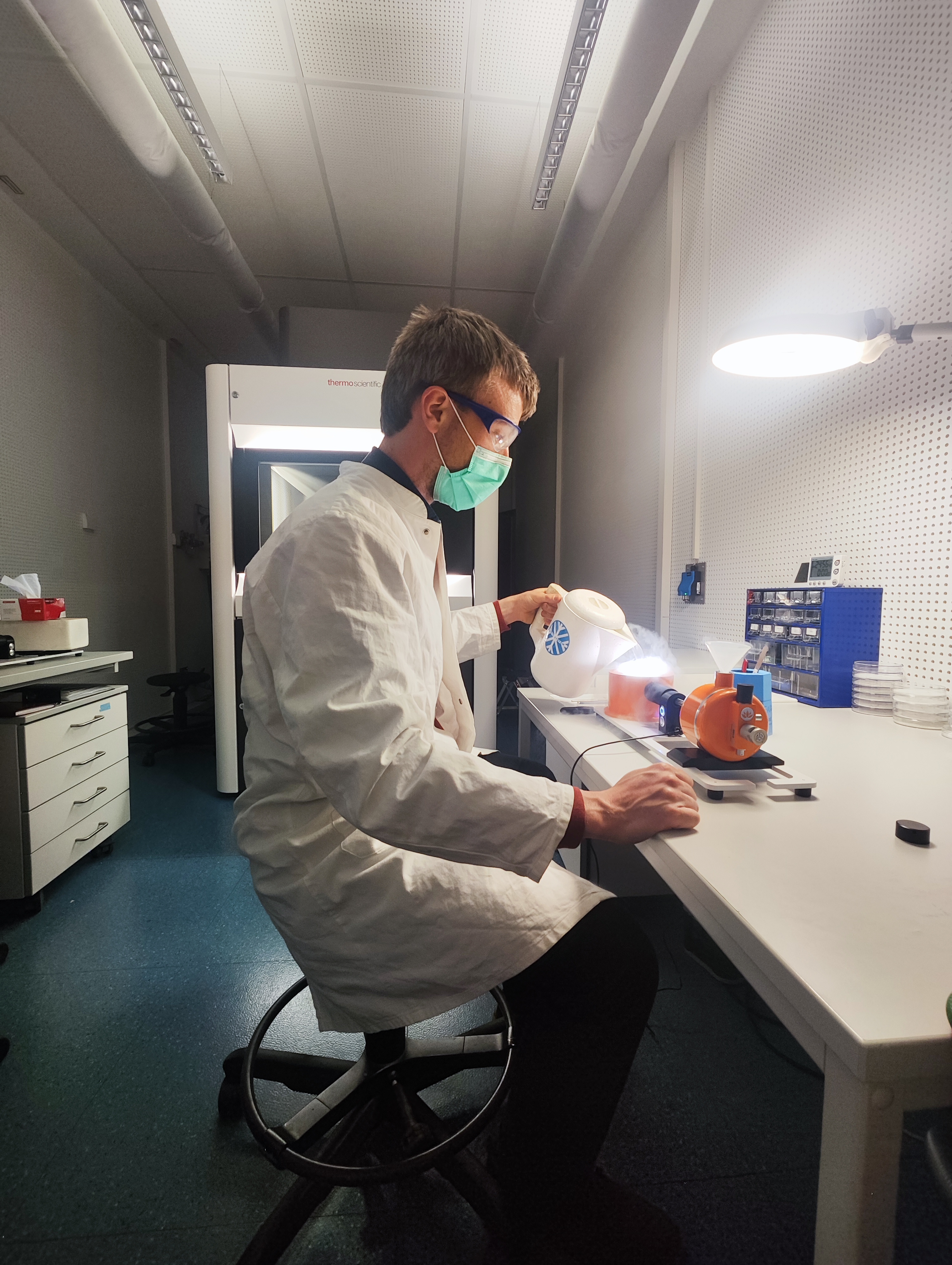 Abbildung 3: Dr. Jakob Ruickoldt bei der Überführung der Proben in den Probenhalter. Foto: Sophie Reisdorf
