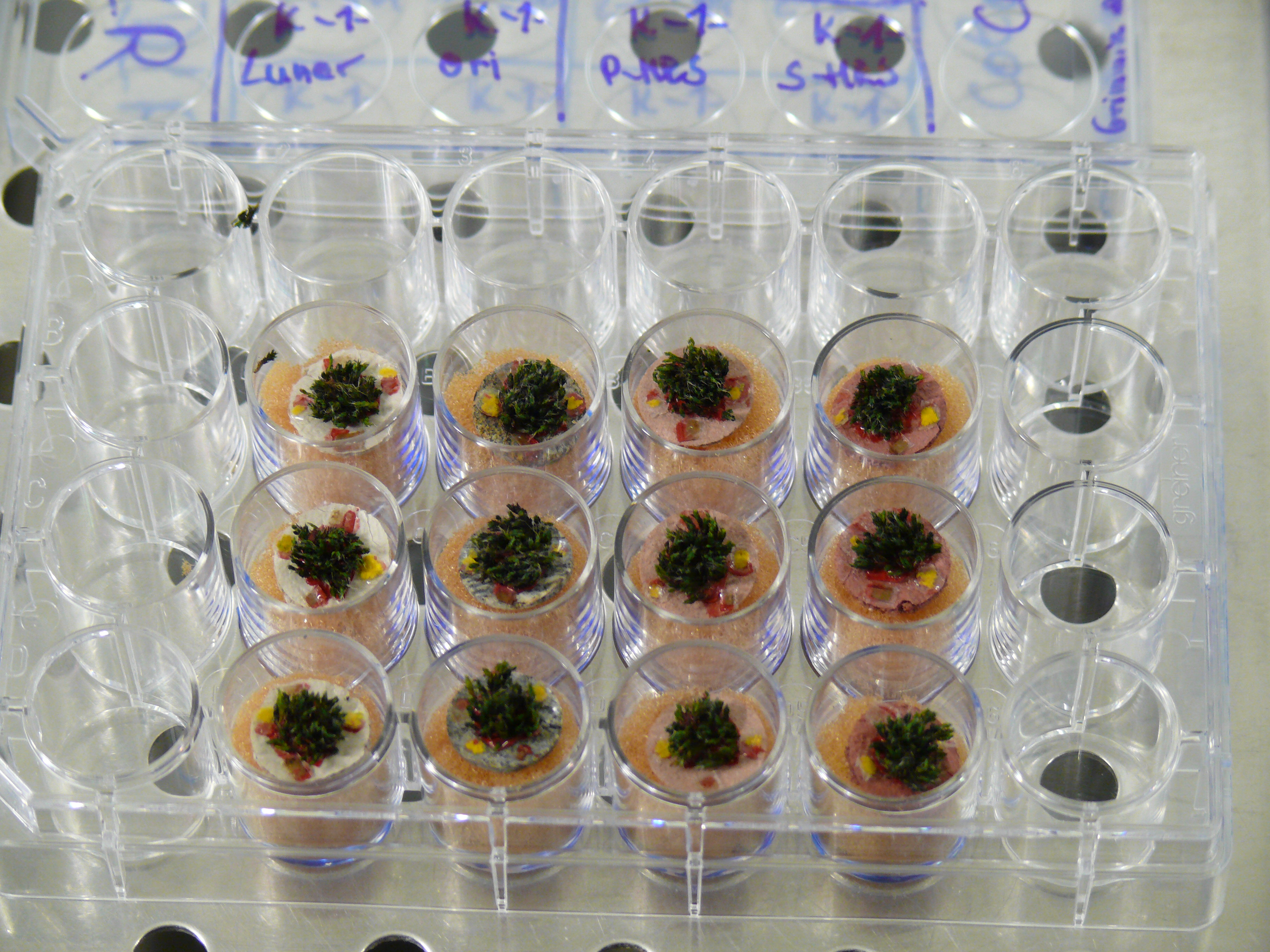 Moose, Bakterien, Urbakterien, Algen, Pilze und Flechten gehen mit auf die Reise ins All. Die Moose stellen dabei die am höchsten entwickelte Organismengruppe dar. Unter ihnen befindet sich neben dem Kissenmoos auch das genetisch gut untersuchte Brunnenlebermoos, das die Universitäten Potsdam und Zürich gemeinsam in die Frachtkisten gepackt haben. In Potsdam beschäftigen sich Wissenschaftler seit Längerem mit Moosen.. Unter anderem legten sie 2010 Ergebnisse zur Stresstoleranz dieser Pflanzen auf extreme Umweltbedingungen vor. Auch gab es in der Vergangenheit zahlreiche Experimente in Weltraumsimulationsanlagen des Deutschen Zentrums für Luft- und Raumfahrt an den Standorten Köln und Berlin sowie im Labor der von Jasmin Joshi geleiteten Arbeitsgruppe Biodiversitätsforschung/Spezielle Botanik im Institut für Biochemie und Biologie.