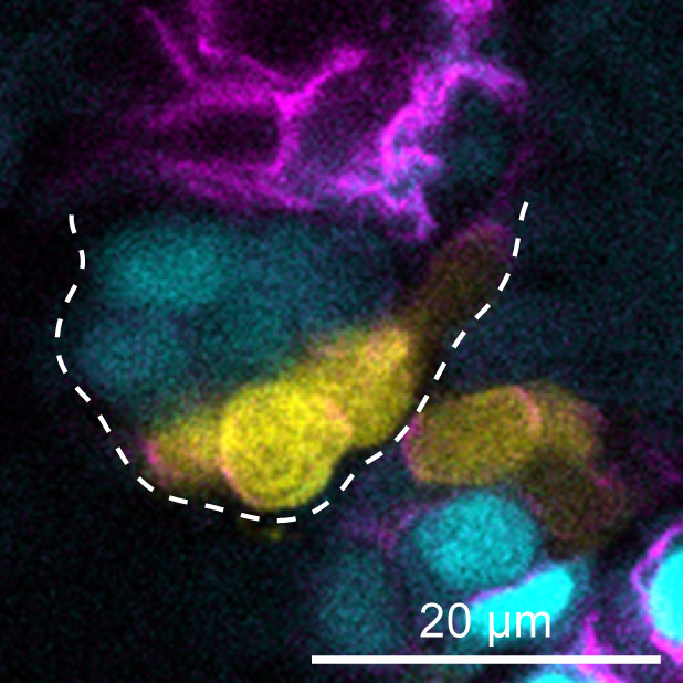 Image: In the embryonic zebrafish heart, the endocardium that is forming cardiac valve leaflets is divided into two subpopulations (here, cyan and yellow). Yellow cells are in contact with blood flow and express Notch, while Vegfr3/Flt4 is active within the cyan cells that lack blood flow stimuli. Their antagonistic activities shape the cardiac valves. Image Credit: Federica Fontana