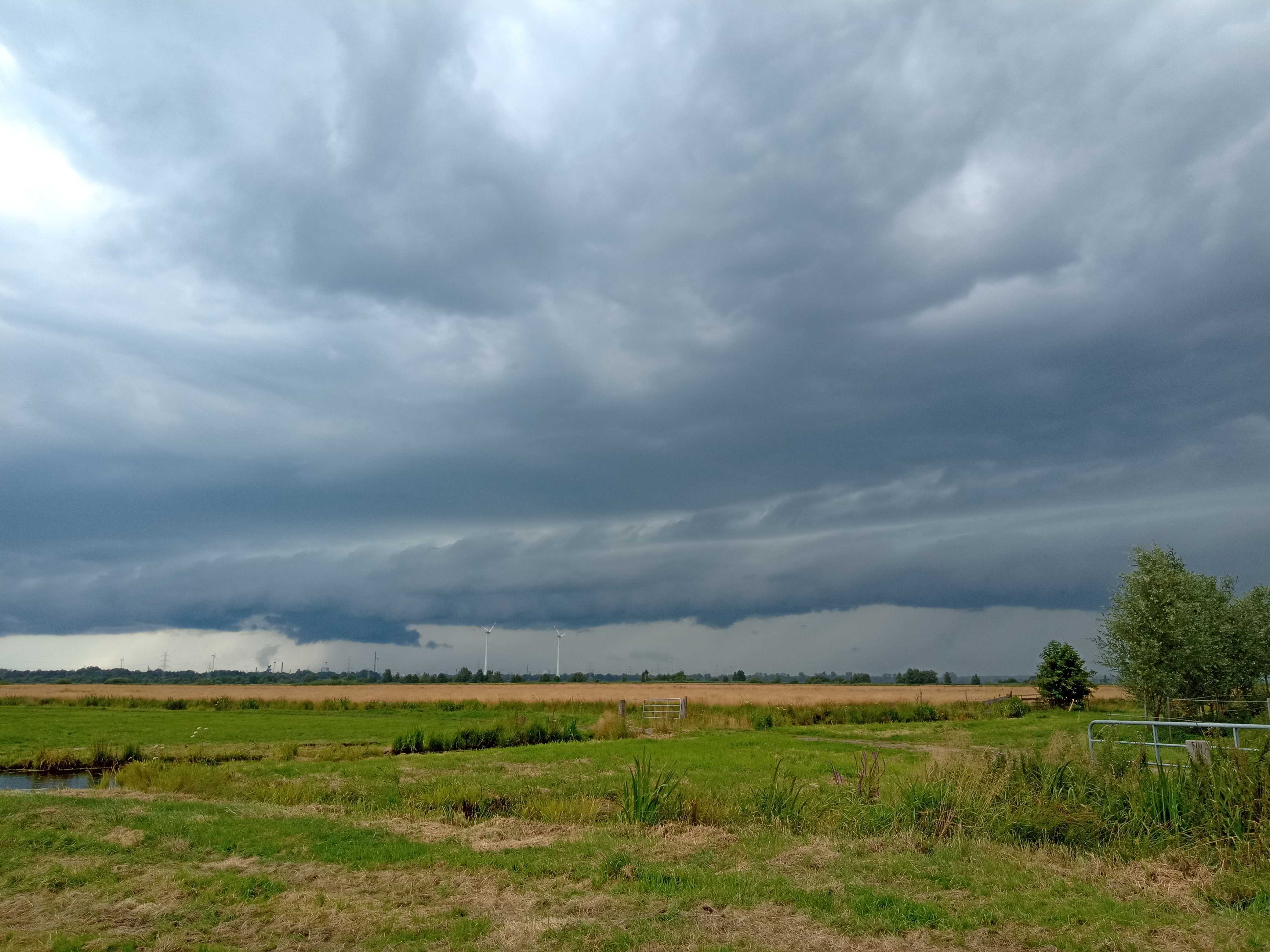 Image 2: A thunderstorm cloud cluster and its typical shelf cloud ahead of heavy rainfall near Bremen (Germany) on 21 July 2023. Image Credit: Maxime Colin.