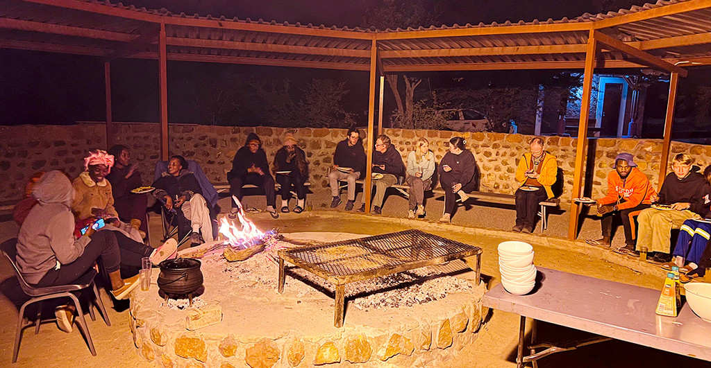 In the evening, we satisfy our hunger with a traditional Namibian braai (barbeque) in front of the fire and under the starry night sky. Despite the cold, we enjoy our last night together between amusing conversations and card games.